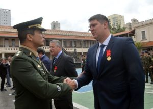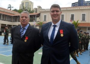 Roberto Sampaio – Gerente da Segurança Patrimonial da CBC e Gustavo Bandeira – Supervisor da Segurança Patrimonial da CBC recebendo a medalha ‘O Solar dos Andradas.